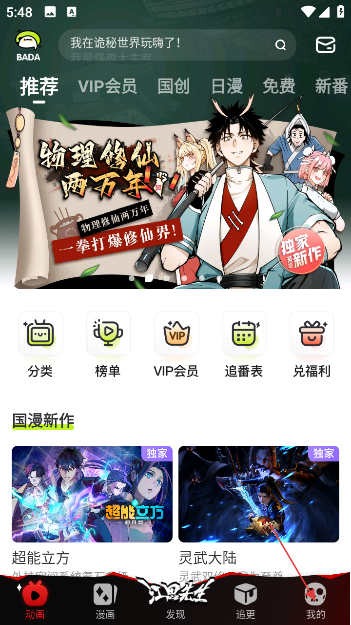 1、在軟件首頁,可瀏覽推薦動畫,通過【分類】【榜單】等功能找內(nèi)容,點(diǎn)擊【我的】進(jìn)入個人頁面。