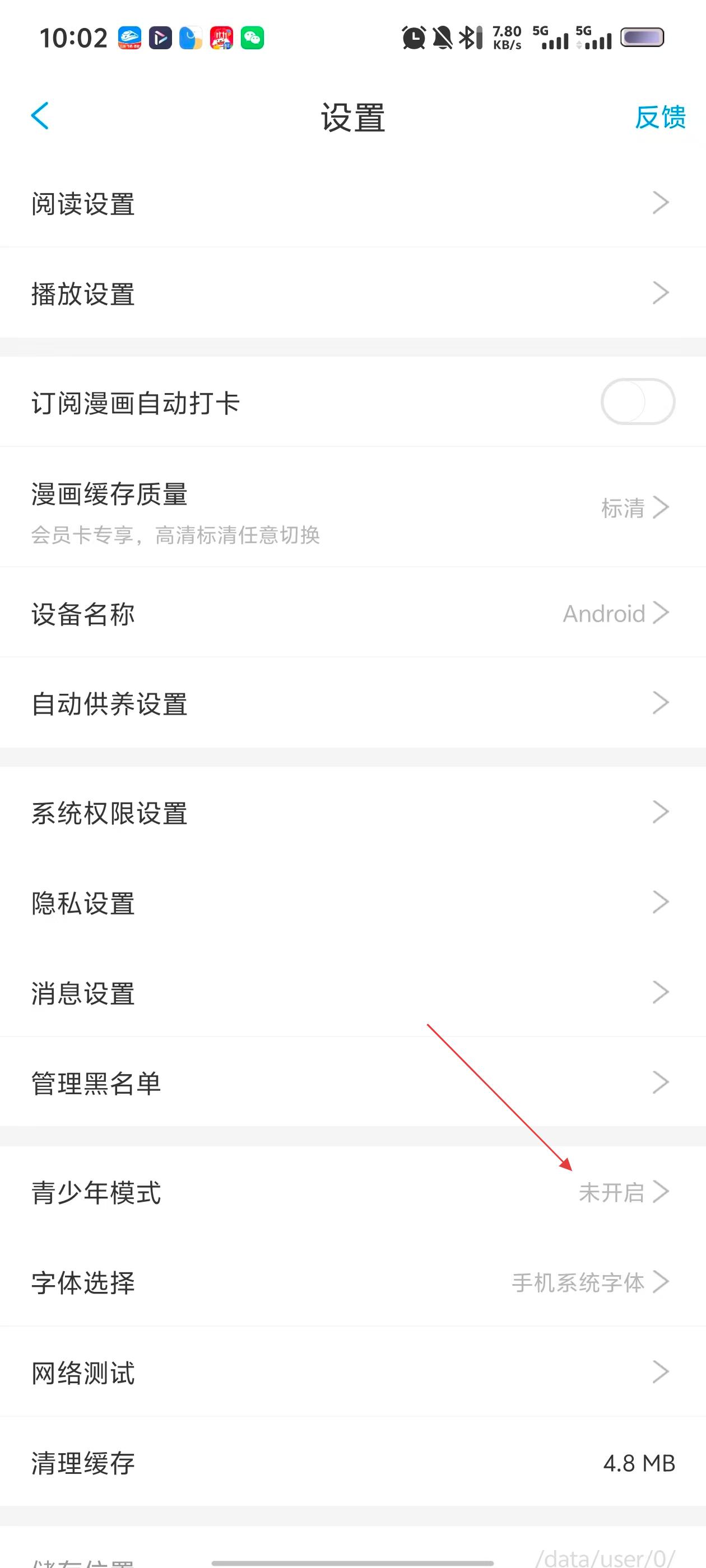 3、在設(shè)置界面,點(diǎn)擊【青少年模式】,可進(jìn)入青少年模式設(shè)置界面。