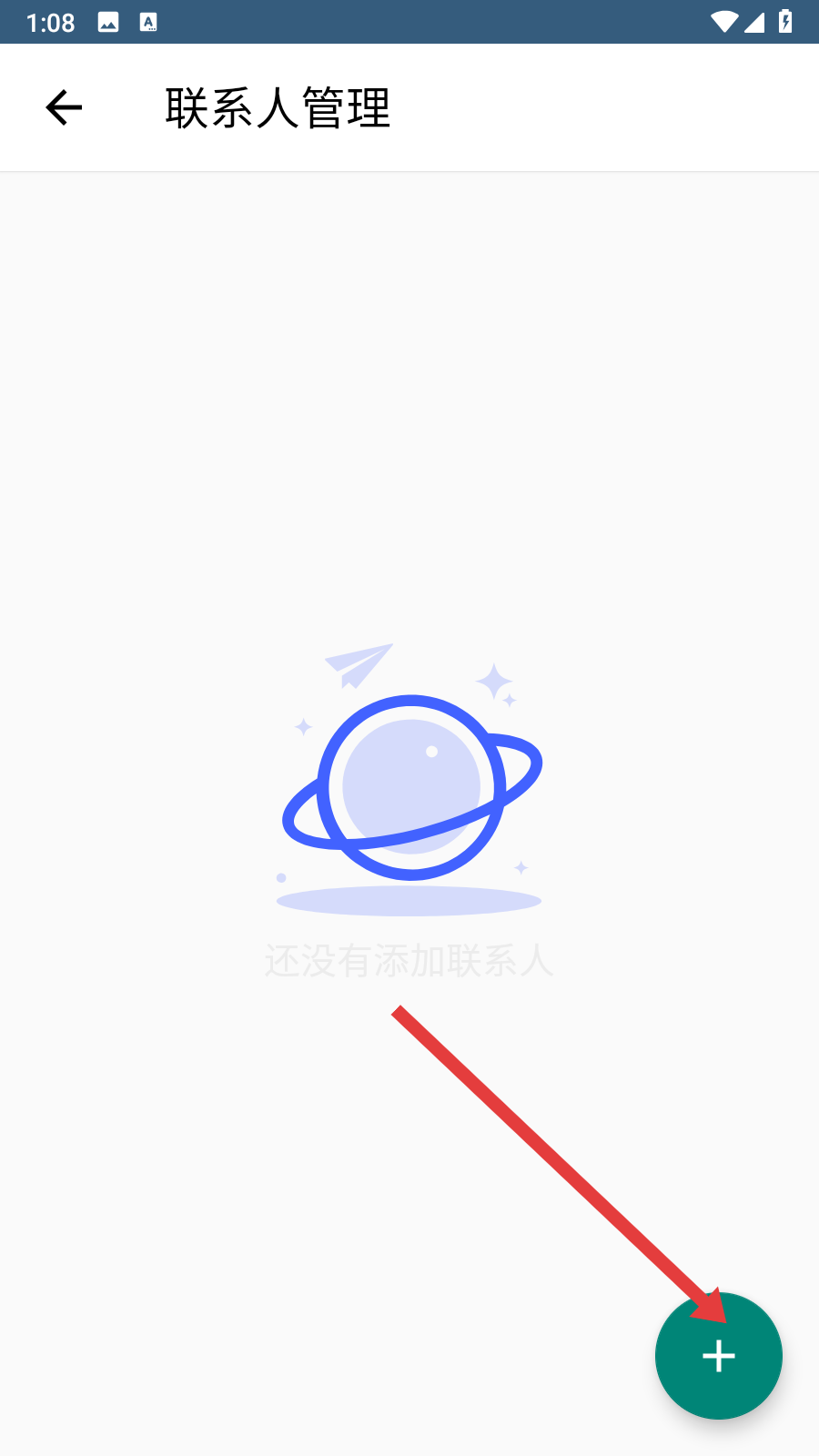 3、在聯(lián)系人管理頁(yè)面,點(diǎn)擊紅色箭頭指向的綠色加號(hào)按鈕,添加新聯(lián)系人。