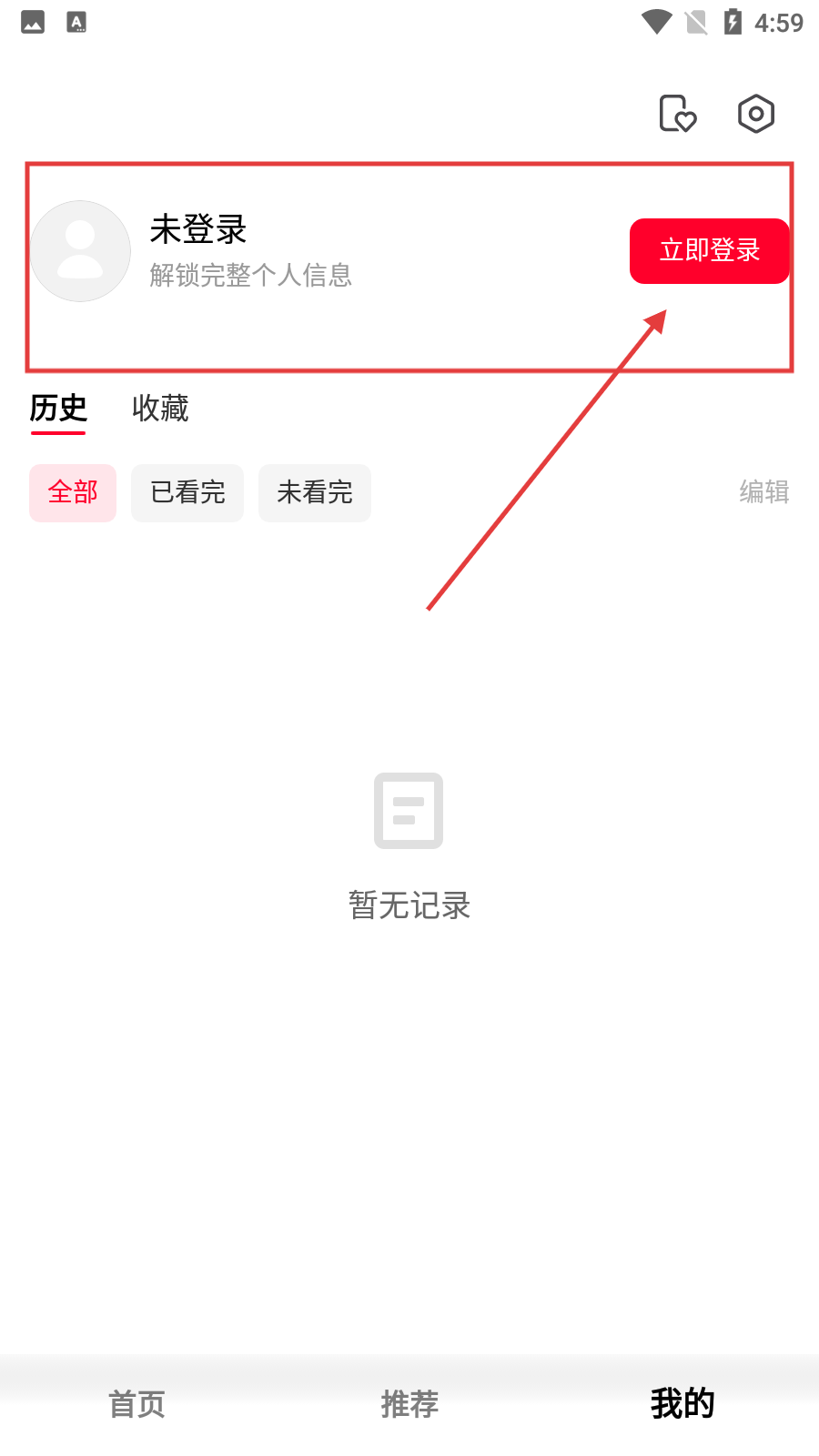 2、在個人頁面,點擊【立即登錄】按鈕,進入手機號輸入界面。