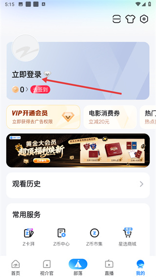 1、打開【Z視介】APP首頁,點(diǎn)擊底部【我的】按鈕,進(jìn)入個(gè)人中心頁面。