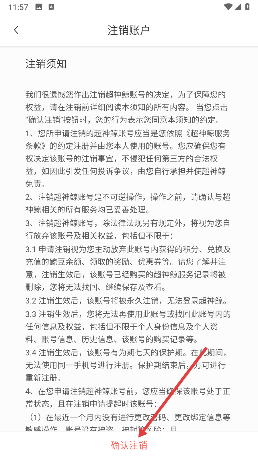 3、在注銷賬戶頁面閱讀注銷須知后,點擊【確認注銷】。