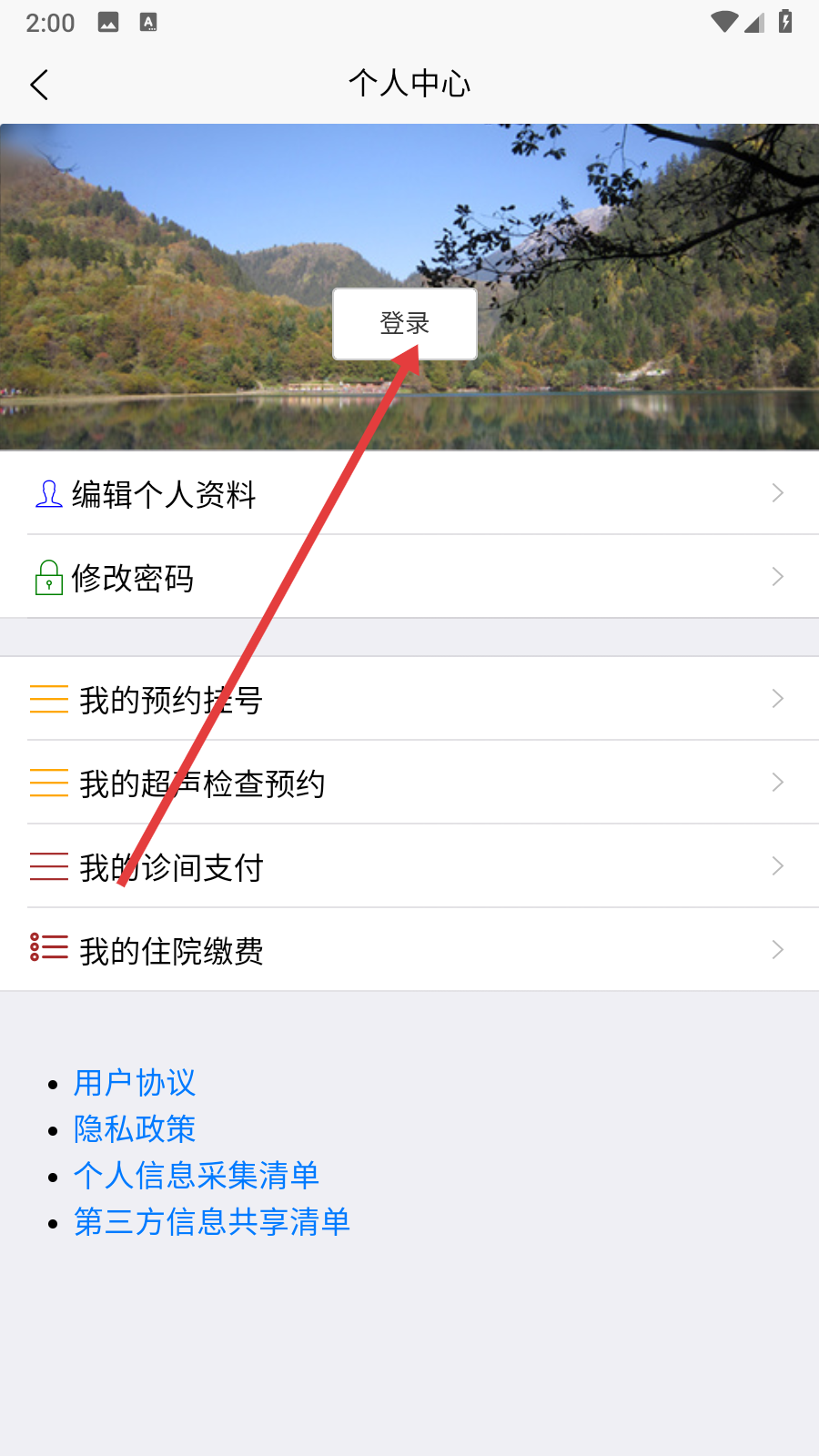 2、在個(gè)人中心點(diǎn)擊【登錄】。