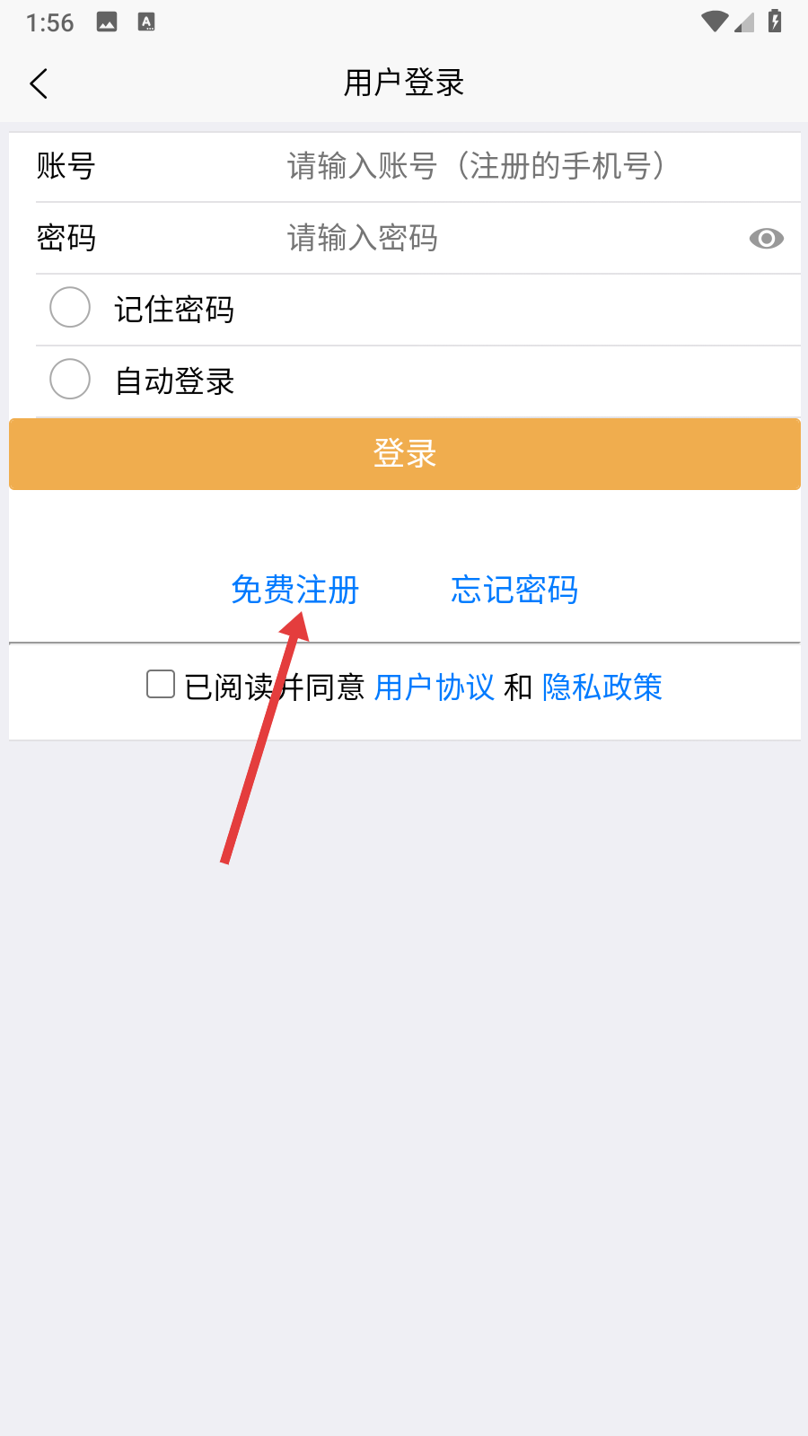 3、進(jìn)入用戶登錄頁后,點(diǎn)擊【免費(fèi)注冊】。