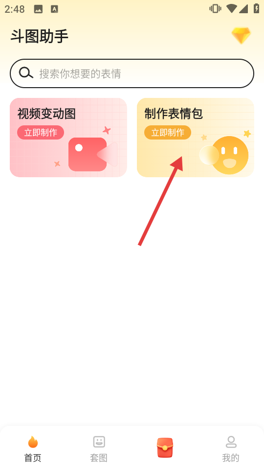 1、在斗圖助手首頁點擊【制作表情包】,進入表情包制作頁面。