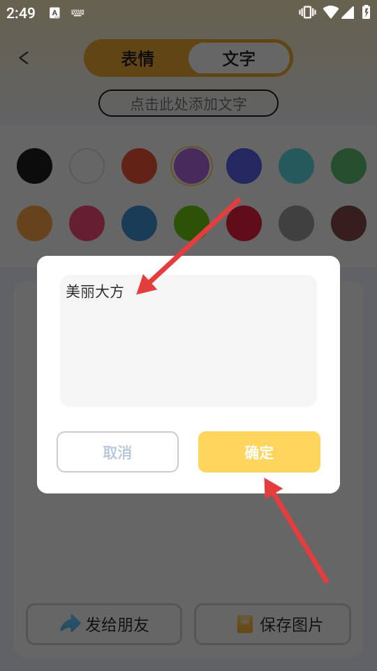 3、在文字輸入框中輸入文字(如“美麗大方”),點擊【確定】。