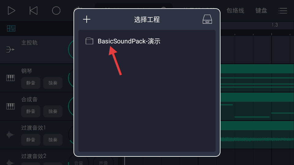 4、在選擇工程頁面點擊【BasicSoundPack-演示】,完成工程選擇操作。
