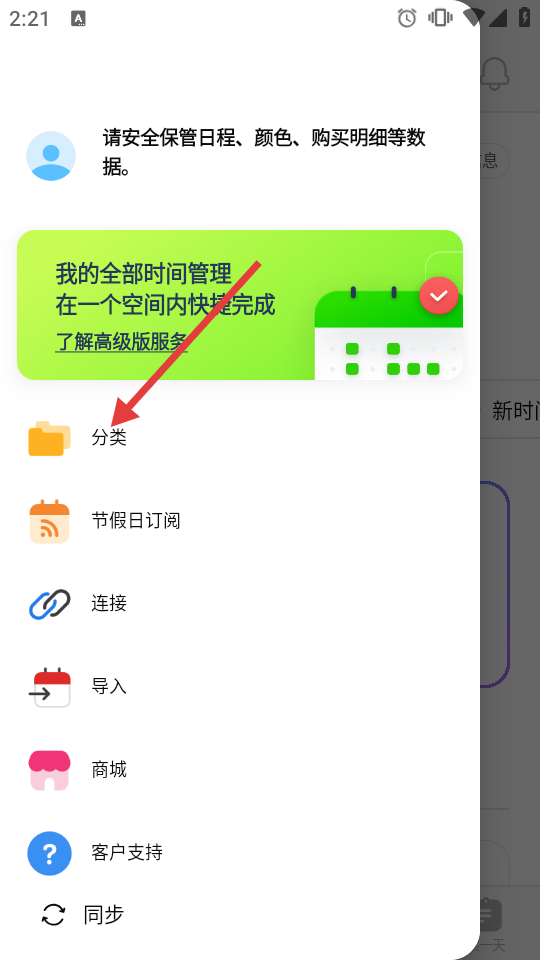 2、在側(cè)邊欄菜單中點(diǎn)擊【分類(lèi)】,進(jìn)入分類(lèi)頁(yè)面。