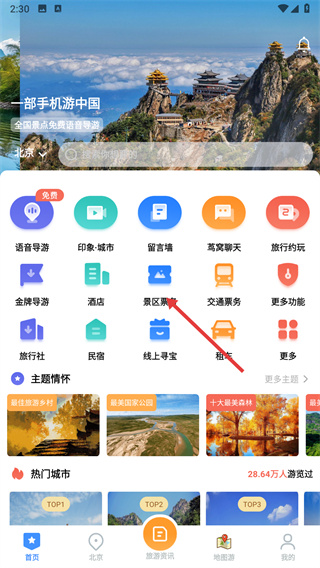 1、在旅游APP首頁點(diǎn)擊【景區(qū)票務(wù)】,進(jìn)入景區(qū)票務(wù)功能頁面。