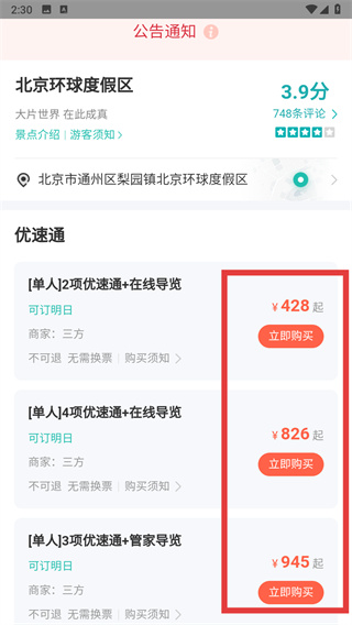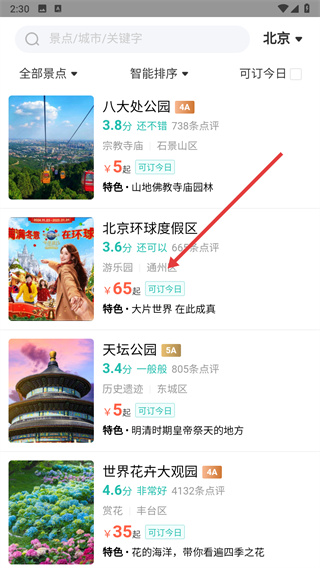 3、在景點(diǎn)列表頁面點(diǎn)擊【北京環(huán)球度假區(qū)】,進(jìn)入該景點(diǎn)詳情頁面。