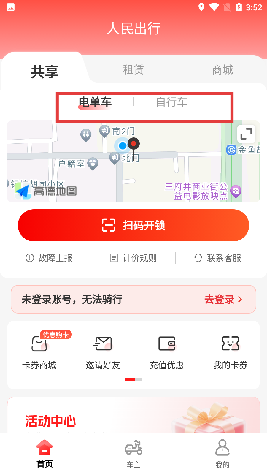 3、操作流程簡(jiǎn)易直觀,一鍵掃碼即可開(kāi)鎖,1元/小時(shí)起的低價(jià)優(yōu)勢(shì)顯著,還車時(shí)通過(guò)“P”標(biāo)志快速查找停車區(qū),無(wú)需復(fù)雜學(xué)習(xí)。