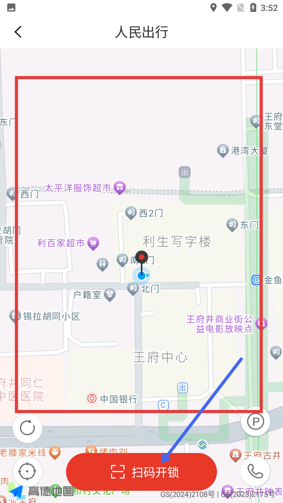 3、對(duì)準(zhǔn)電單車上的二維碼,點(diǎn)擊【掃碼開(kāi)鎖】。