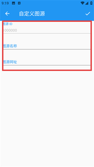 4、在自定義圖源頁面填寫【圖源ID】【圖源名稱】【圖源網(wǎng)址】,完成后點(diǎn)擊確認(rèn)按鈕,即可添加自定義圖源。