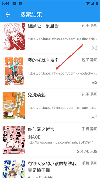 1、在搜索結(jié)果頁(yè)面點(diǎn)擊【我的成就有點(diǎn)多】,進(jìn)入該漫畫詳情頁(yè)。