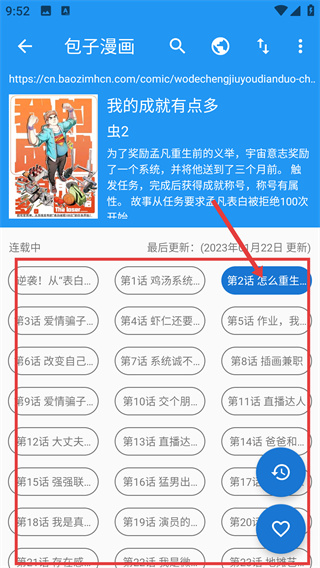 3、在正序內(nèi)容頁(yè)面點(diǎn)擊【第2話怎么重生...】,進(jìn)入該話的閱讀界面。