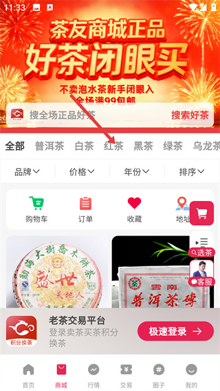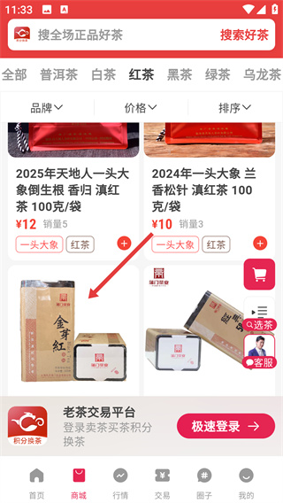 1、在茶友商城頁面點(diǎn)擊【紅茶】分類,進(jìn)入紅茶商品列表頁,篩選心儀紅茶。