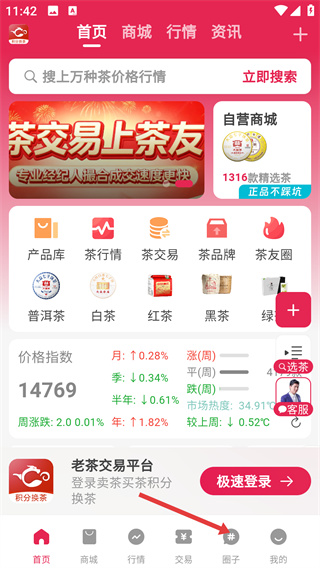 1、在茶友平臺首頁點(diǎn)擊【圈子】,進(jìn)入茶友圈頁面。