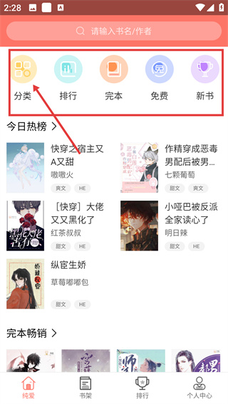 1、在小說(shuō)APP首頁(yè)點(diǎn)擊【分類(lèi)】,進(jìn)入小說(shuō)分類(lèi)頁(yè)面。