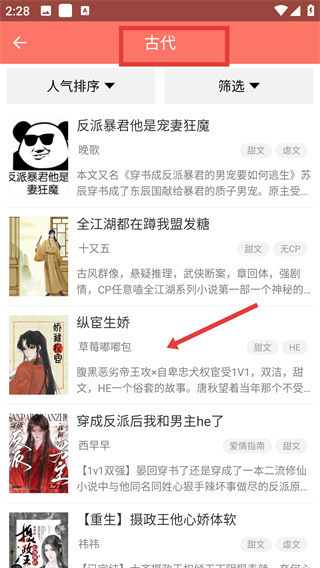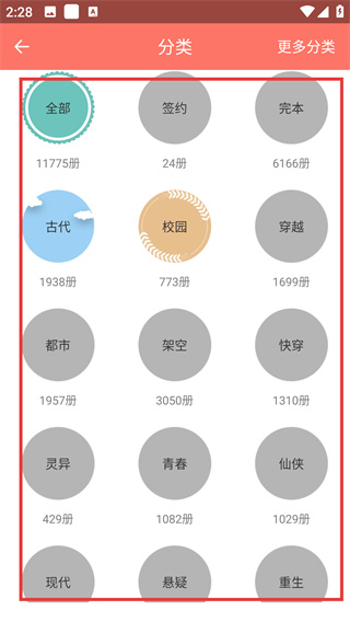 2、在分類(lèi)頁(yè)面選擇對(duì)應(yīng)的分類(lèi),進(jìn)入小說(shuō)列表頁(yè)面。