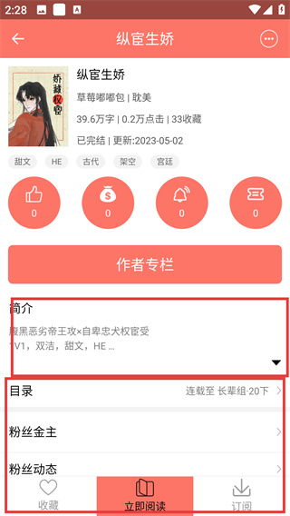 4、在小說(shuō)詳情頁(yè)面,可查看簡(jiǎn)介、目錄等信息,點(diǎn)擊【立即閱讀】即可開(kāi)始閱讀。