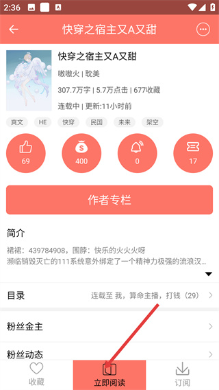 2、在小說詳情頁面點擊【立即閱讀】,進入小說閱讀頁面。