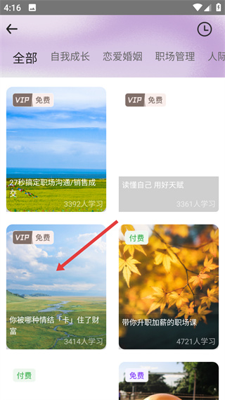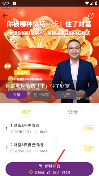 2、在課程列表中選擇《你被哪種情結(jié)「卡」住了財(cái)富》課程,進(jìn)入課程詳情頁(yè)。