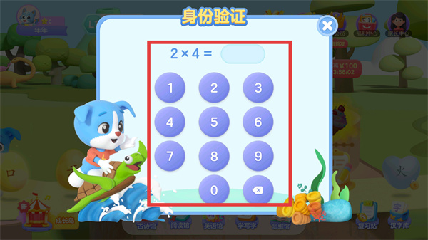 2、進(jìn)入【身份驗(yàn)證】界面后,計(jì)算【2×4】的結(jié)果,通過【數(shù)字鍵盤】準(zhǔn)確輸入答案,即可完成身份驗(yàn)證流程。