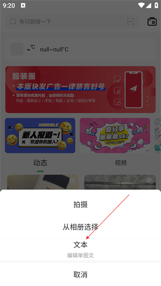 3、在彈出的選項中選擇【文本】,進入單圖文編輯的內(nèi)容創(chuàng)作界面。