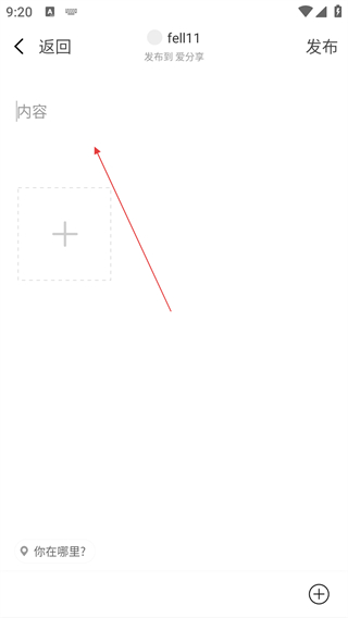 4、在【內(nèi)容】輸入框填寫信息,添加素材后點擊右上角【發(fā)布】,完成動態(tài)發(fā)布。