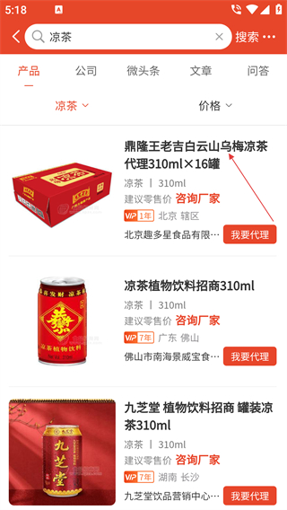 3、點擊目標(biāo)產(chǎn)品(如【鼎隆王老吉白云山烏梅涼茶】),進(jìn)入該產(chǎn)品的詳情頁面。