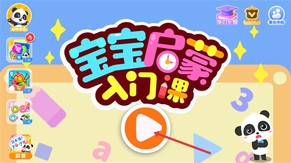 1、在【寶寶啟蒙入門課】界面,點擊橙色播放按鈕,進(jìn)入課程學(xué)習(xí)頁面。