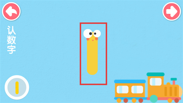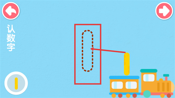 3、在認(rèn)數(shù)字界面,引導(dǎo)孩子認(rèn)識數(shù)字“1”,通過虛線輪廓熟悉數(shù)字形狀,把圖案拉到虛線框內(nèi)。