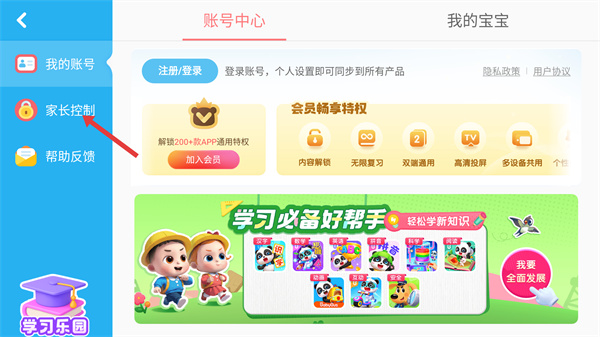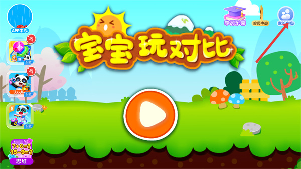 1、在【寶寶玩對比】主界面點(diǎn)擊【家長中心】,進(jìn)入賬號中心頁面。