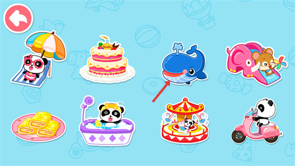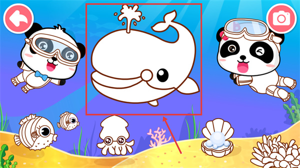 3、進入鯨魚涂色界面后,選擇鯨魚輪廓,進入創(chuàng)作頁面。