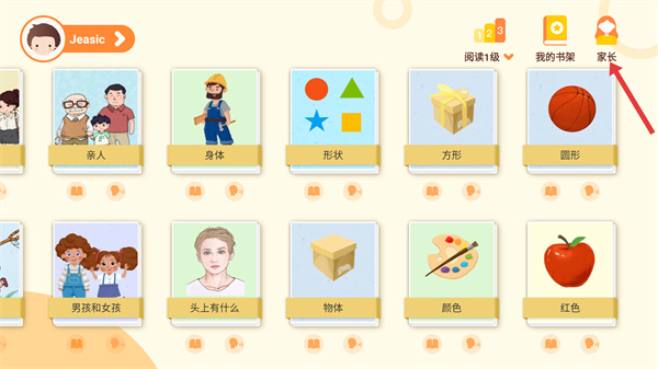 1、在學習界面點擊右上角【家長】,進入家長中心解鎖環(huán)節(jié)。