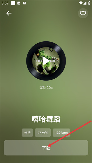 4、在音樂詳情頁(yè)面點(diǎn)擊【下載】,即可將該健身音樂下載到本地,方便運(yùn)動(dòng)時(shí)收聽。