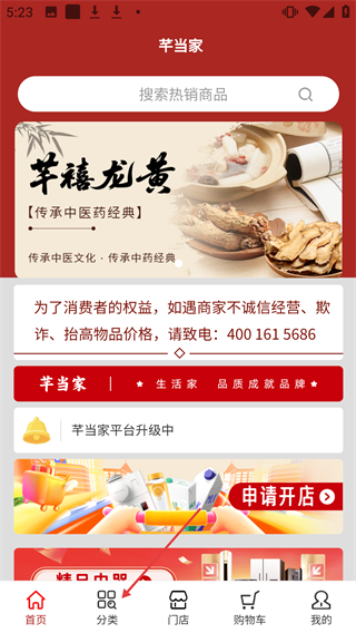 1、進入軟件,點擊底部【分類】,進入商品分類頁面。