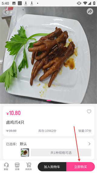 3、在醬鹵家禽商品列表中選擇商品可進入商品詳情頁。