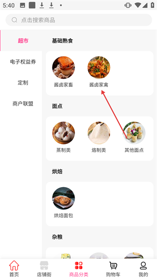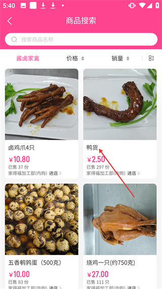 2、在商品分類頁面點擊【醬鹵家禽】可進入其商品列表。