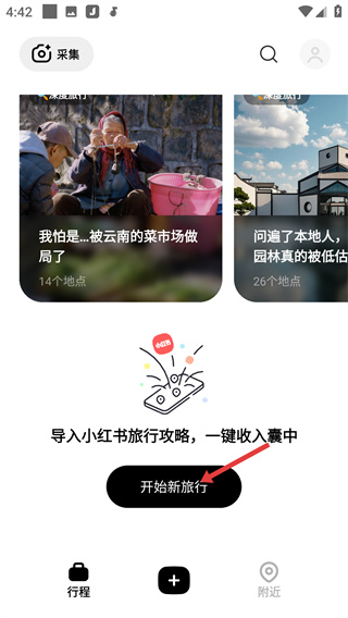 1、在APP首頁點擊【開始新旅行】,進入目的地輸入頁面。