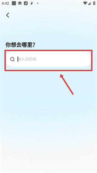 2、在目的地輸入頁面的【輸入目的地】搜索框中,輸入想要前往的地點,準備設置行程細節(jié)。