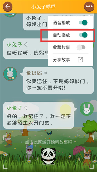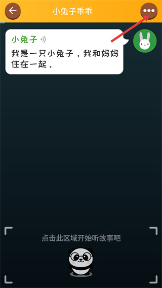3、進(jìn)入小兔子乖乖的故事頁(yè)面后,點(diǎn)擊右上角的三點(diǎn)按鈕,打開功能設(shè)置菜單。