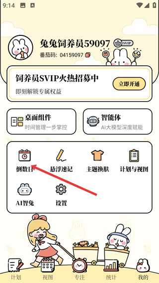 2、在個人中心頁面找到【倒數(shù)日】選項并點擊,進入倒數(shù)日頁面。