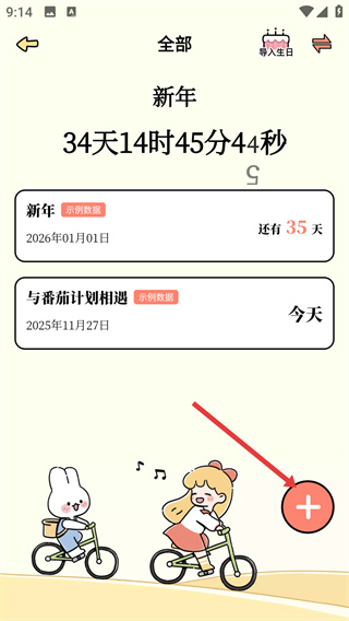3、在倒數(shù)日頁面點擊右下角的【+】按鈕,進入添加頁面,選擇【紀念日】分類來創(chuàng)建新的倒數(shù)日內(nèi)容。