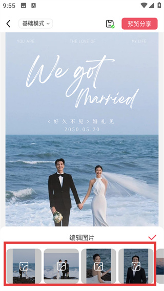4、在圖片編輯的素材選擇區(qū)域,挑選合適的圖片素材,替換模板中原有的圖片內(nèi)容,完成圖片部分的編輯。