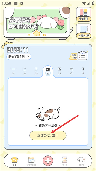 3、云養(yǎng)寵玩法豐富,創(chuàng)建計劃領(lǐng)養(yǎng)小狗,打卡獲狗糧維持其飽腹清潔,支持頭像切換與狗窩裝扮,讓自律不孤單。