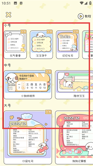 4、在小組件選擇頁面,可瀏覽小號、中號、大號等尺寸的小組件樣式,選擇合適的進(jìn)行添加操作。
