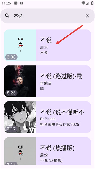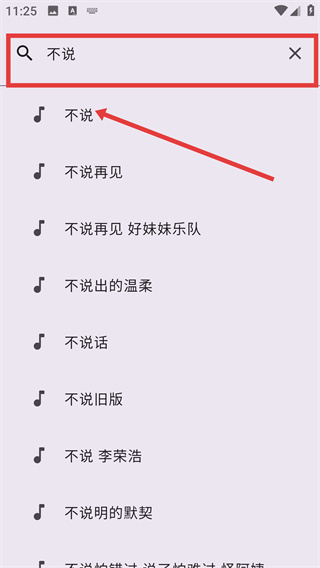 3、在“不說(shuō)”的搜索結(jié)果頁(yè)面,選擇對(duì)應(yīng)歌手的【不說(shuō)】音樂(lè)條目,進(jìn)入該音樂(lè)的詳情頁(yè)面查看信息。