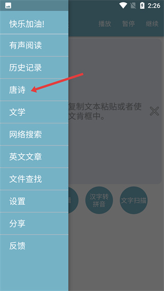 2、在展開的功能列表中選擇【唐詩(shī)】選項(xiàng),進(jìn)入唐詩(shī)內(nèi)容頁(yè)面。