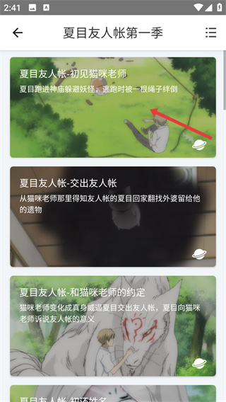 1、進入《夏目友人帳第一季》劇集列表頁面,選擇目標(biāo)劇集條目,進入對應(yīng)劇集的詳情頁面。